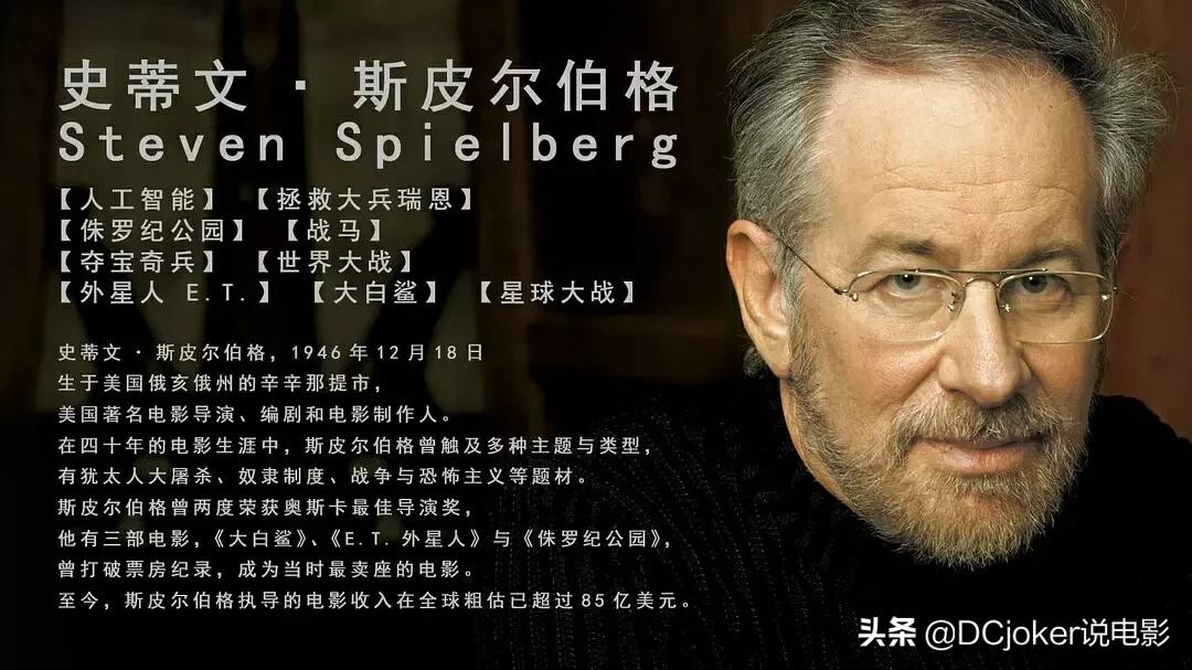 代表作:《大白鲨》、《E.T外星人》、《侏罗纪公园》系列、《辛德勒的名单》、《拯救大兵瑞恩》、《头号玩家》等。