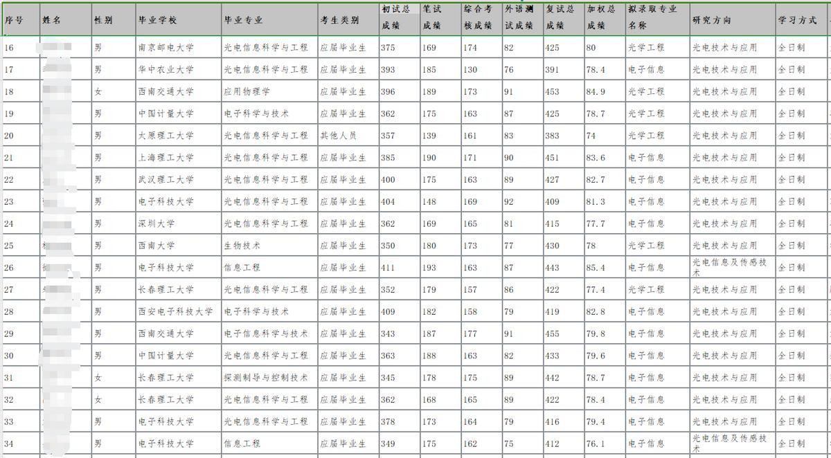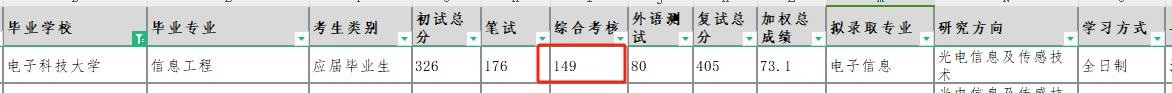 但是对于复试备考来说,笔试的优先级要高于综合考核,我们就假设没竞赛没项目的同学综面分数肯定会偏低,就以下方电子科技大学信通院24届拟录取名单中的综面低分考生为例进行分析。