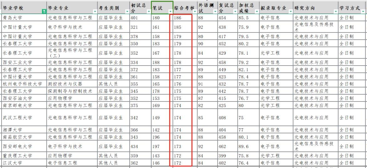 分别来自青岛大学、中国计量大学的这两位考生得到180+的高分。除此之外,还有很多170分段、160分段的双非考生。