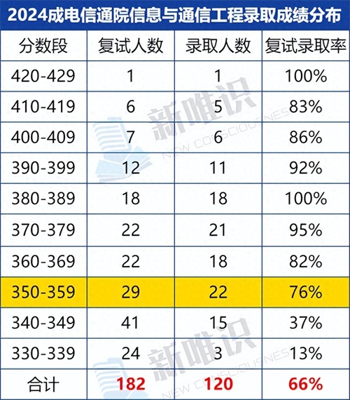 24届通信专硕的初试分数和复试录取率几乎完全呈正相关。