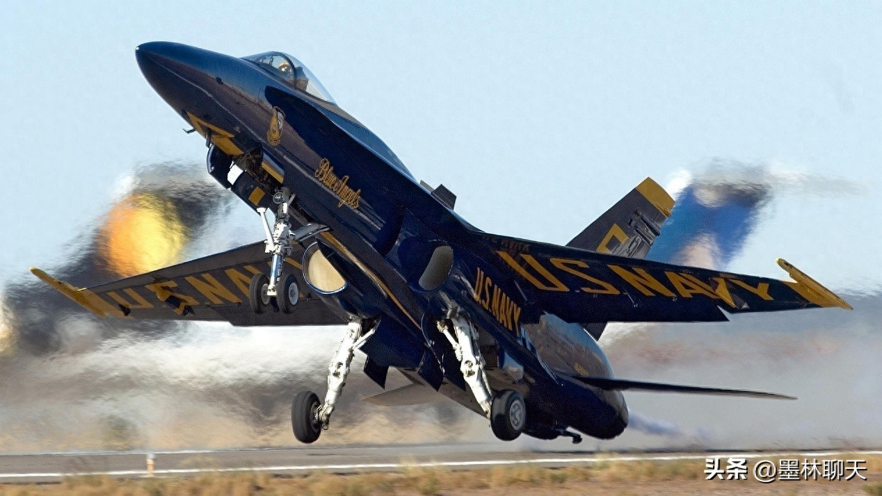 F/A-18“大黄蜂”。这还是一款来自七十年代的老机,也是美国海军蓝天使飞行表演队座机,但比前两者要新一点,F/A-18原本是和F-16一起竞争美国空军的轻型战斗机,虽然遭到失败,却被美国海军看中,成为美军新一代舰载机。1978年11月18日首飞成功,1983年1月7日首批进入美国海军陆战队服役,第二年进入美国海军服役,自此成为美国航母舰载机的绝对主力。F/A-18一种飞机可以同时担负舰队防空和对地对海攻击等多种职能,因此其各种改型在美国航母甲板上很长时间处于统治地位,即使现在受到F-35的挑战,但至少在不远的将来,仍是不可或缺的尖兵。