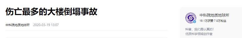 原文登载于中科院地质地球所2020年03月19日关于伤亡最多的大楼倒塌事故的报道