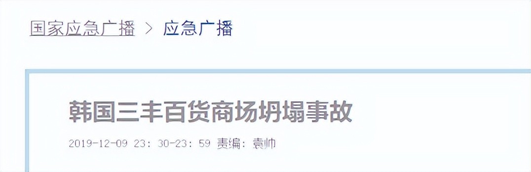 原文登载于国家应急广播2019年12月09日关于韩国三丰百货商场坍塌事故的报道
