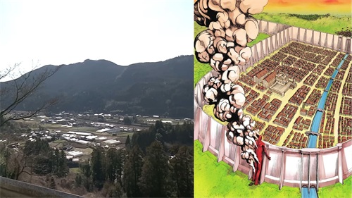 《进》故事最突出的设定是那三道高墙,谏山创曾在采访中分享,高墙的灵感来自被高山包围的家乡。他说:“小时候觉得山里就是全世界,让我好奇山外的世界是怎样的。认为巨人存在于外界的想法,犹如我们必须生活在艰难的社会中。”