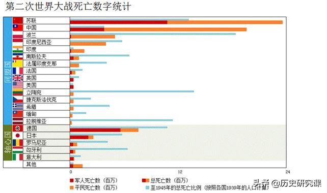 二战后世界各参战国死伤人数,战争的残酷不是我们能想象的。