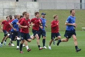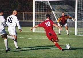 足球可能是最基本的团队球类运动。两支球队,每支球队有 11 名球员(包括守门员),使用他们身体的任何部位(除了他们的手或手臂)将球推入对方球队的球门。在两个 45 分钟的比赛结束时,得分最多的球队赢得比赛。不允许直接的身体接触(推、抓等)。