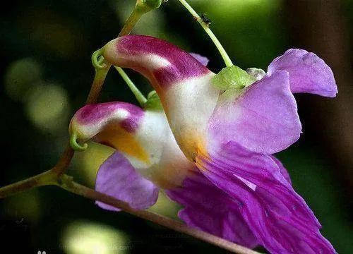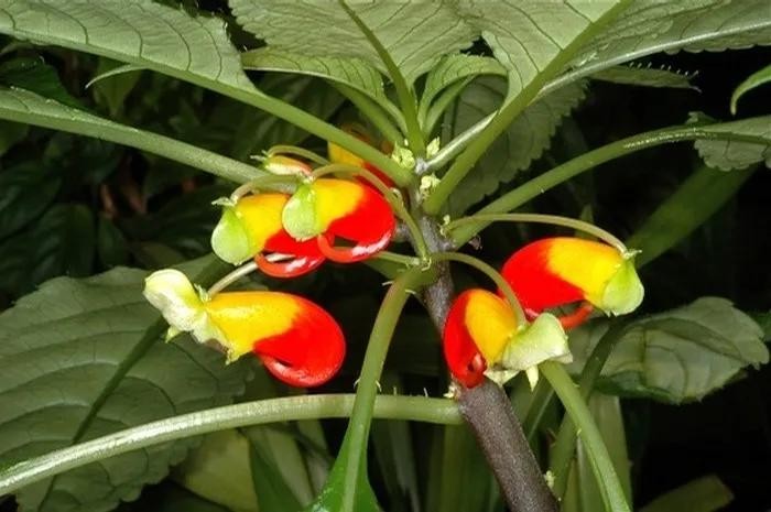 鹦鹉花是凤仙花属的一种奇特的小草本植物。盛开的形状像一只鹦鹉。颜色丰富,由紫色、白色、棕红色、深粉红色、红色和白色混合。由独立的5个不等的花瓣组成。该物种因为其珍贵的特性,在世界各地均没有引种栽培的记录,泰国政府为了保护这种植物也禁止偷运私带出境,所以想要看鹦鹉花还得到它的家乡泰国去看才行。