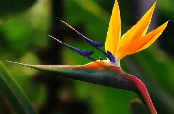 鹤望兰,别称:天堂鸟、极乐鸟花,是一种非常优雅美丽的植物,花朵有数朵,都生长在总花梗上,下面托有一个佛焰苞,佛焰苞绿色,边紫红,萼片橙黄色,花瓣暗蓝色。鹤望兰在19世纪末期开始,数量就呈下降的趋势,如今已经很少见到这种花了,非常的珍贵,特殊的造型也让它成为了世界上最美丽的花朵之一。