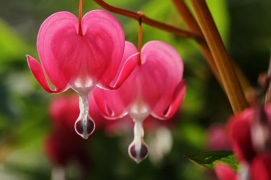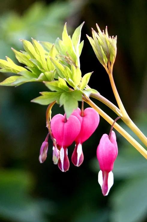 荷包牡丹乃少有的心形花,一颗颗粉红色的爱心相连成串,浪漫又迷人,一向深受花友的喜爱。不过,其花语却与颜值并不对等,远不如样子讨喜,通常暗指不可预知的死亡、绝望的暗恋,浑身上下透露出悲伤的气息,一般不适合送人。好在单凭外观,荷包牡丹也能取胜,一样值得室内盆栽,是不可多得的好花。