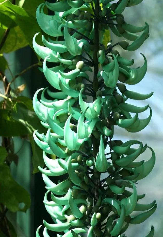 碧玉藤是一种比较稀有的花,花朵的形状是一个爪子形状的,花的颜色是绿色和蓝色的,也被称为玉葡萄,只有在菲律宾雨林中才能找到。因其生长的地方遭到破坏,所以它也是一个濒危的植物,又只能生长在指定的土壤中。也算是世界上比较稀有的名花了,在我国基本是看不到的,知道的人也并不是很多。