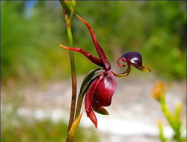 飞鸭兰其花朵侧面像极了一只只凌空飞起的小鸭子,非常生动 ,令人不禁赞叹造物者的神奇,是澳洲特有的兰花。飞鸭兰很受欢迎,但是在澳洲本土也不多见。