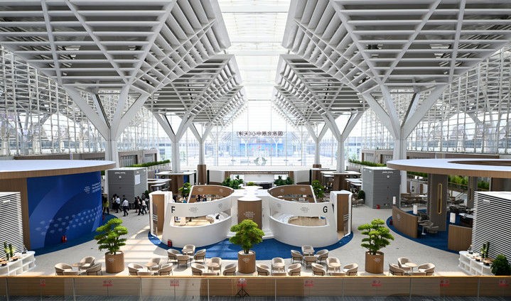 6月22日,媒体记者在国家会展中心(天津)探馆时拍摄。