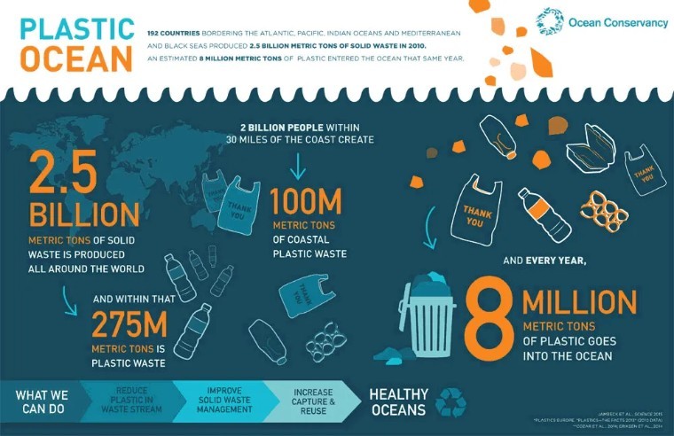 每年,有1100万吨塑料垃圾被排入海洋,而海洋里已经漂浮了2亿吨的塑料垃圾。