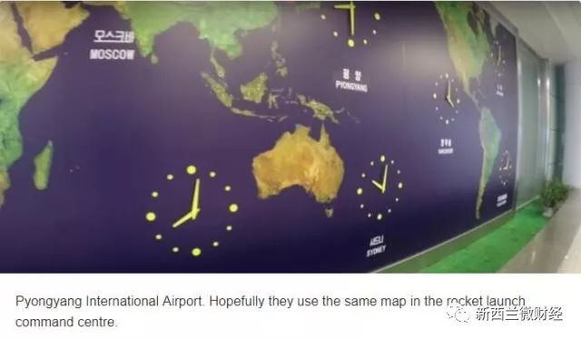 平壤国际机场的地图上,没有新西兰