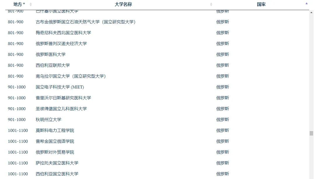 俄罗斯高校表现(前1100名)