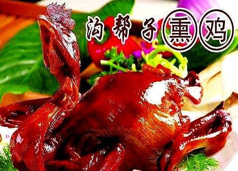 听名字就知道,又是以地名和做法命名的惯例。据记载,沟帮子熏鸡始于清光绪年间,距今已有100多年的历史,在东北特别有名。沟帮子熏鸡的做法是先煮后熏,主要的过程就是“熏”,具体做法是:熏前先在煮好的鸡身上抹遍香油,再将鸡放入锅内篦子上,锅底烧至微红时,下入白糖熏 分钟后,翻转鸡身再熏二三分钟即可。