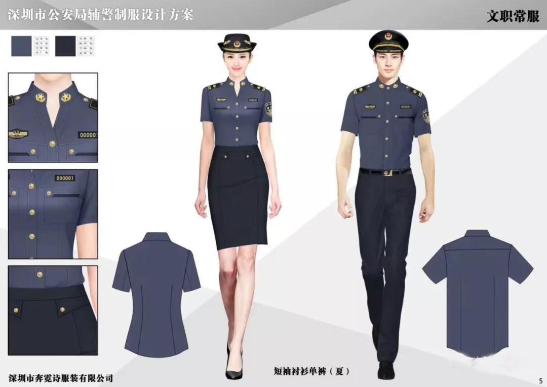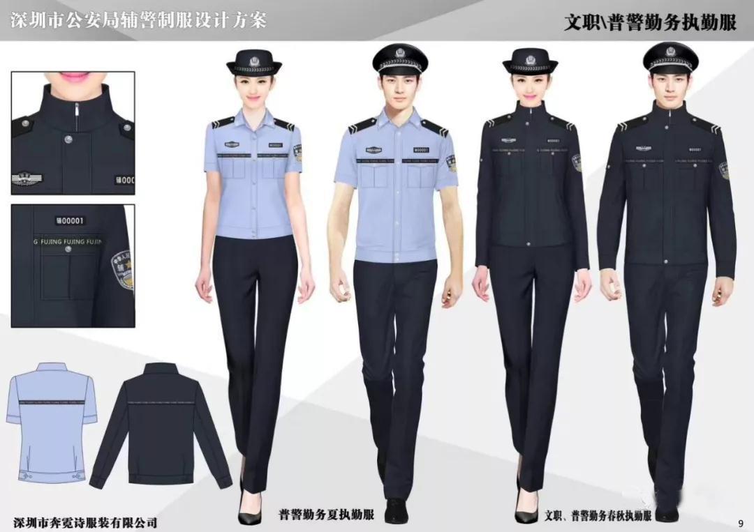 这组服装是深圳辅警改革后,各大服装企业竞标的图样,目前尚不清楚最终是否能被采纳。但是,从服装的设计上,我们可以看出,本次辅警服装的新样式,和正式警察的衣服更像了。