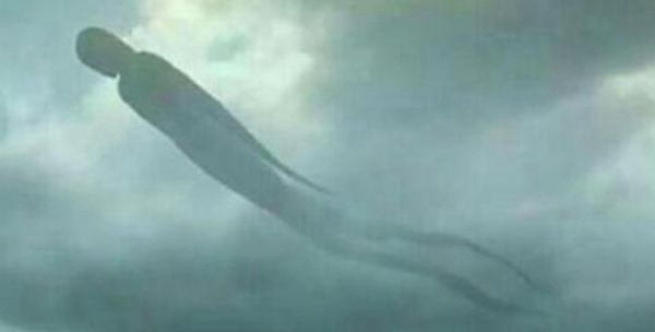 天空惊现死人图 手长足长造型恐惧空中悬浮半小时