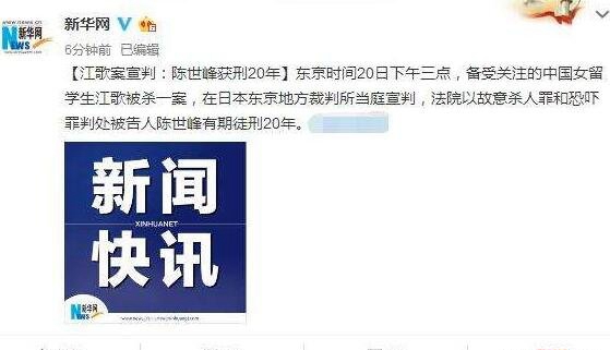 据新闻人士吐露,陈世峰针对于江歌罹难案一审讯决截止提起上诉。陈世峰交收其状师的提议举行上诉,以为量刑过沉,期望弛刑1-2年。江歌母亲回应称尚未收到检方报告。12月20日,东京裁判所以蓄意杀人罪、恫吓罪,判处陈世峰有期徒刑两十年。
