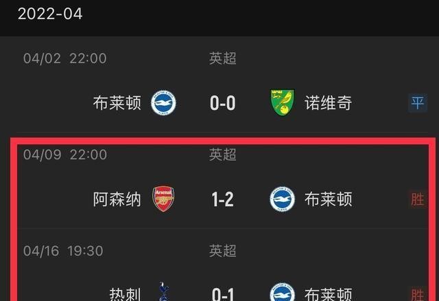 布莱顿在昨天晚上进行英超比赛中,凭借在比赛最后时刻的进球“绝杀”热刺,战胜了热刺,热刺也终结了四连胜的势头。上一轮英超比赛布莱顿客场战胜了阿森纳。阿森纳又输给南安普顿遭遇三连败,本轮曼联在诺维奇身上终于取得三分,让争四悬念再起。