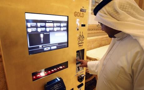 对于迪拜的超级富豪来说,取出一大笔钱实在是太普遍了,在ATM机里吐出金条才有意思。 迪拜有一些自动取款机,它们不仅是用黄金制成的,而且可以取出金币、金条和奖章。 它的工作方式跟你刷卡取钱一样,但没有钱,只有黄金。