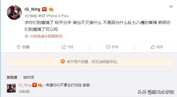 LOL:宁王自曝与女友分手,请求网友不要瞎猜,更不要打扰前女友
