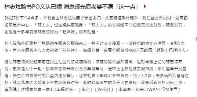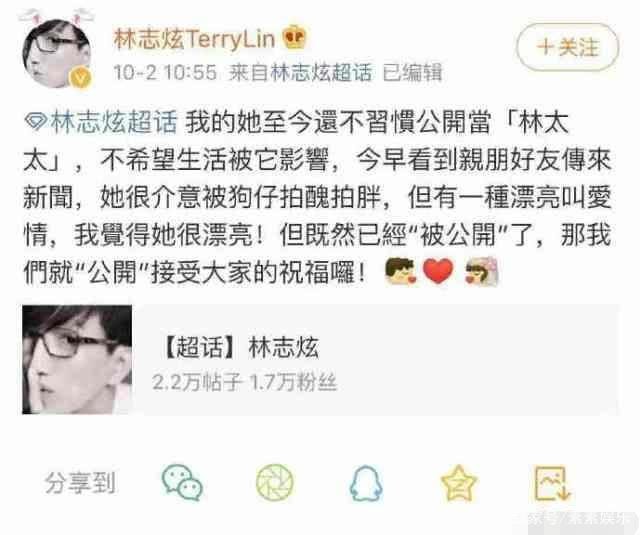 据说两人已经育有一个儿子,目前就读台湾国中,这消息一出,许多网友都说林志炫隐藏得太好了,网友最后还是纷纷送上了甜蜜的祝福。