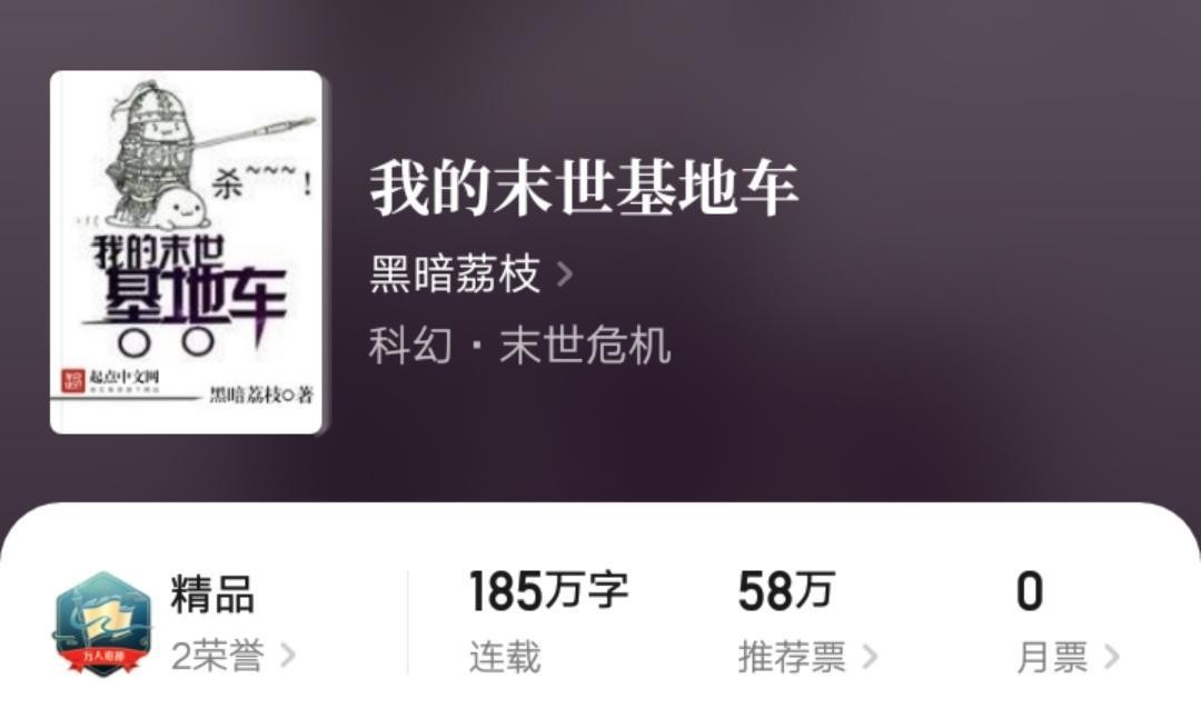 除了这本丧尸女友,黑暗荔枝还有一本非常成功的作品,那就是《我的末世基地车》。