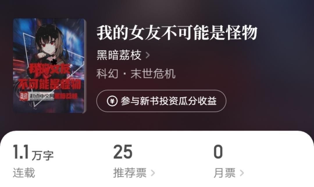 6月2号,美女大神黑暗荔枝在起点上传了自己的新书《我的女友不可能是怪物》。