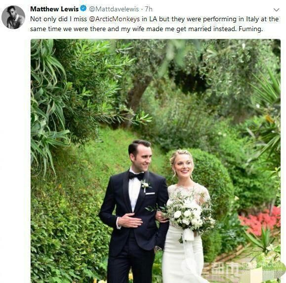 北京时间5月29日凌晨,现年28岁的英国男演员马修·路易斯在推特上宣布与女友安琪拉·琼斯在意大利完婚,并晒出婚照,十分幸福甜蜜。