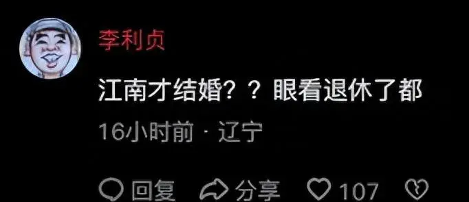 江南如今才结婚,这让许多网友感到迷惑不解——“江南竟然现在才结婚??难以置信,他都快退休了”。