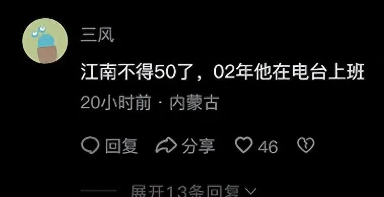 江南如今至少也有40岁,观众回忆推测显示他是一个确凿的晚婚者。