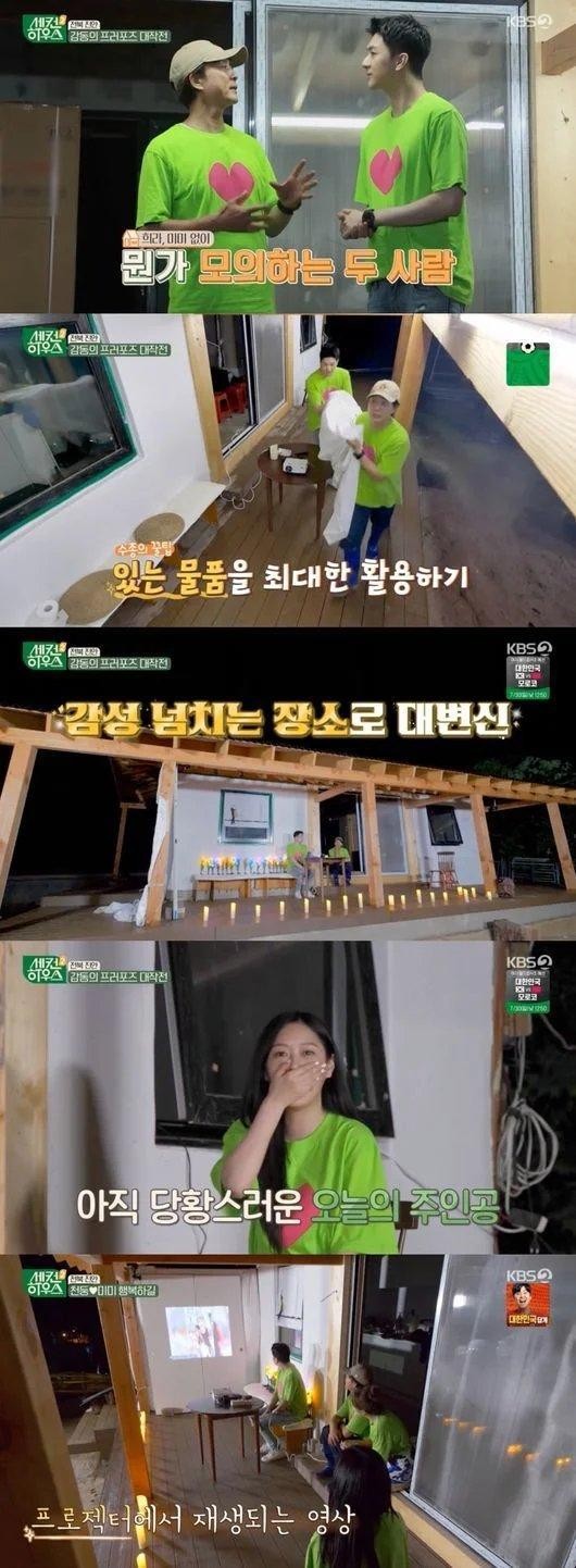 崔秀钟也传递了自己的活动秘诀,表示可以充分利用家里的一切,光束投影仪屏幕由普通布制成,房子用 LED蜡烛和郁金香装饰,营造出一种情感氛围。