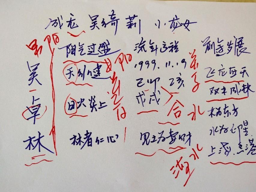 首先呢,我看这里边吴字下面是天啊。在易经里边乾卦叫天行健,君子自强不息。吴卓林是一个非常有见解,有见地,并且阳刚之气十足的一个女孩。那就像天一样,他有自己的想法,然后我们看这个卓字,这里边儿有日,日火为上炎,心里边憋着火呀,感觉不痛快,她对这个世界、对身边的人、对她的家庭、父母他是有偏见的,有看法的,所以一直憋在心里。