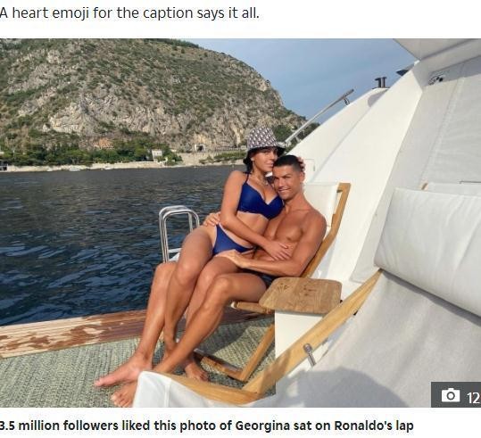 今夏,乔治娜与 C 罗曾在私人游艇上共度假期,而排在第八位的照片正来自于这一时期。图片中,乔治娜身穿着蓝色比基尼,依偎在 C 罗的身旁。与此同时,乔治娜还在图片旁标注了心形图案,这张照片收获了粉丝们 355 万的点赞。