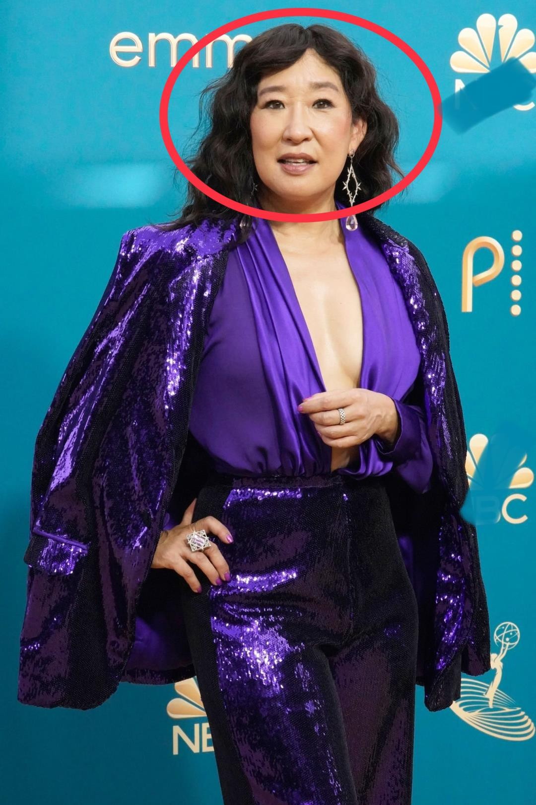 另一位女明星,身穿紫色亮片套装,直接亮“瞎”全场,那倒也不是因为衣服的亮片,而是因为她的脸。