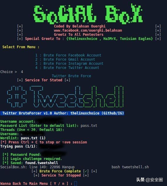 由 Belahsan Ouerghi 编码的 Bruteforce 攻击框架(Facebook,Gmail,Instagram,Twitter)