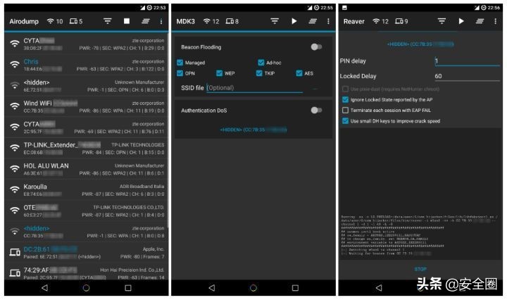 适用于 Android 5+ 的 Aircrack,Airodump,Aireplay,MDK3 和 Reaver GUI 应用程序。(需要 root)