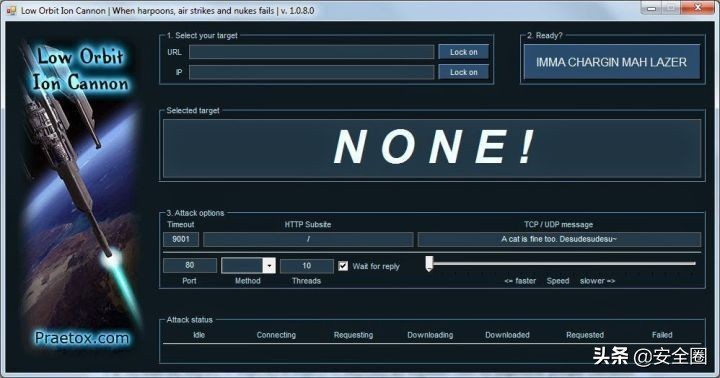 LOIC 通过向服务器发送 TCP 或 UDP 数据包,以破坏特定主机的服务,在目标站点上执行拒绝服务(DoS)攻击(或由多个人使用的DDoS攻击)。很多人自愿使用 LOIC 来加入僵尸网络。