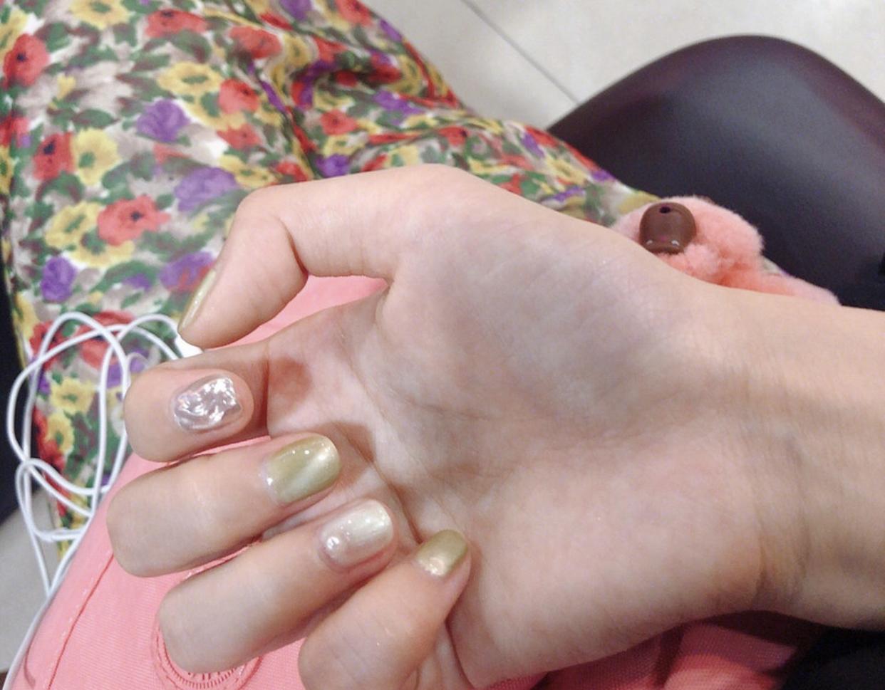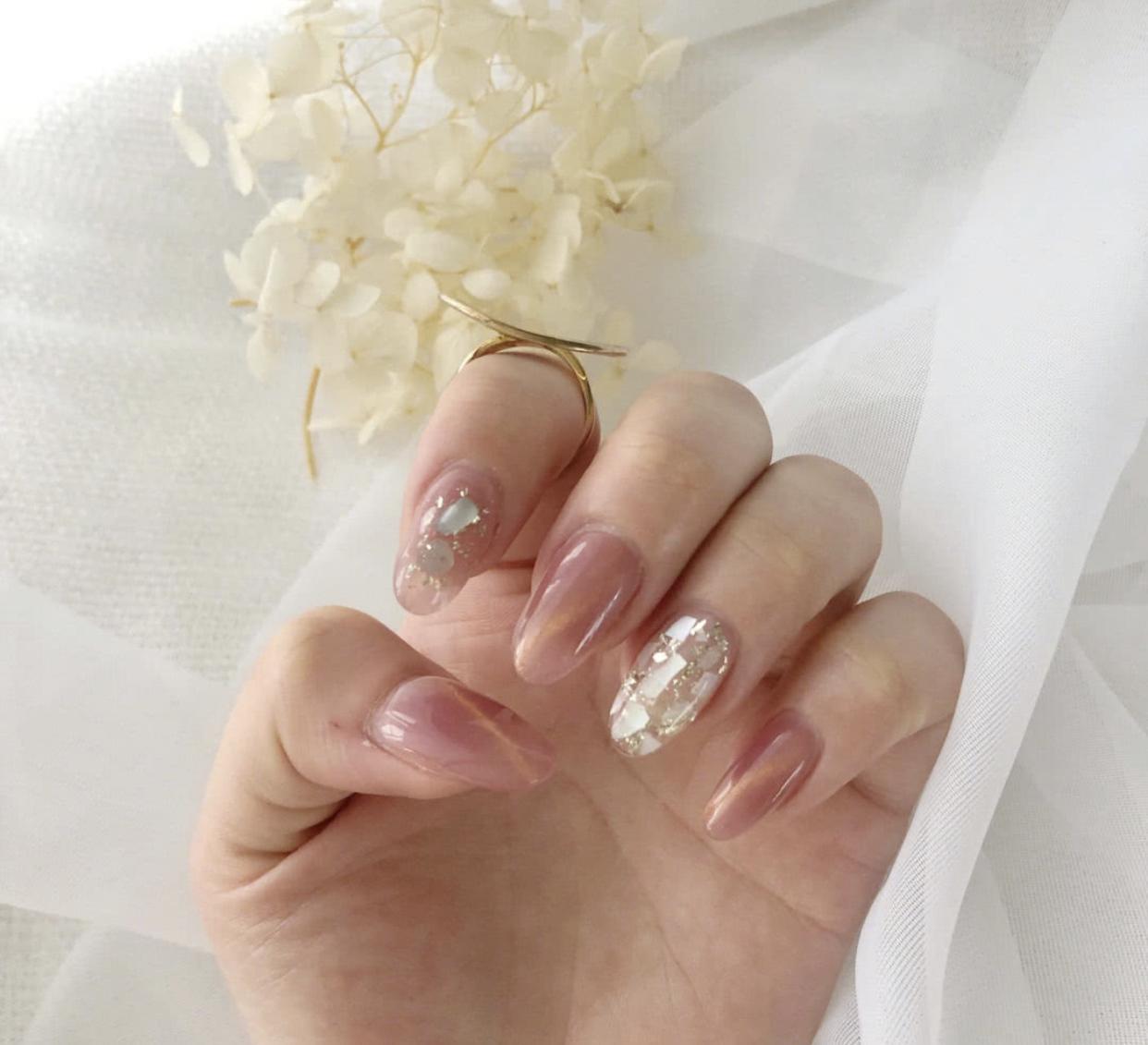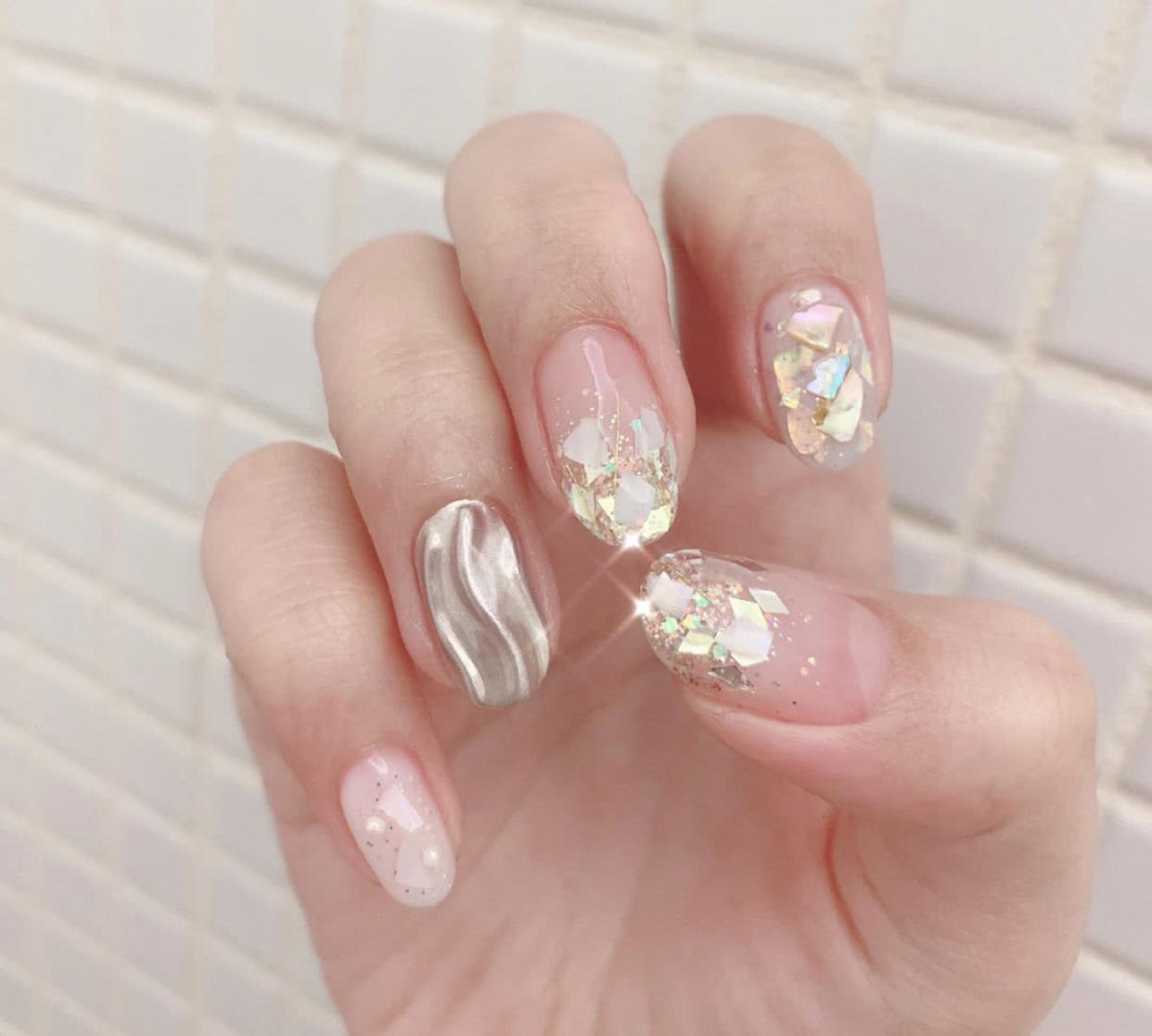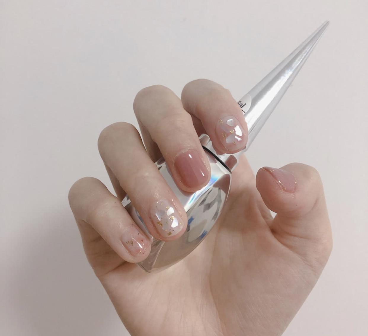 还有夏日必做的透明贝壳片美甲,做在短甲上也是仙气十足哦!贝壳片有着非常迷人的光泽感,做在美甲上显得格外高级,短甲加上贝壳片,会显得非常精致,小小的指甲一下子就变得亮丽起来了!