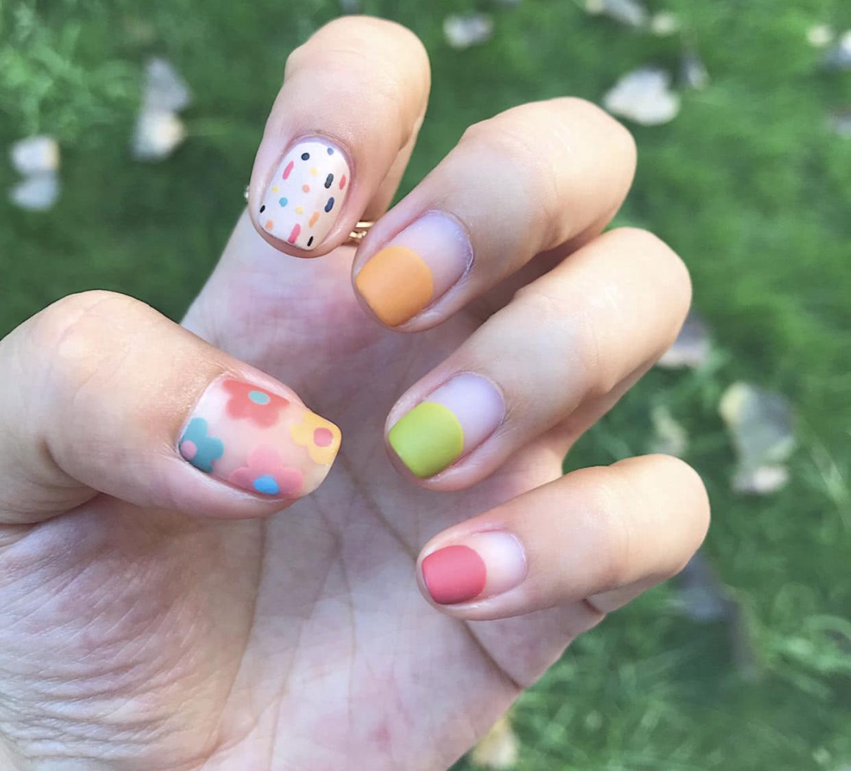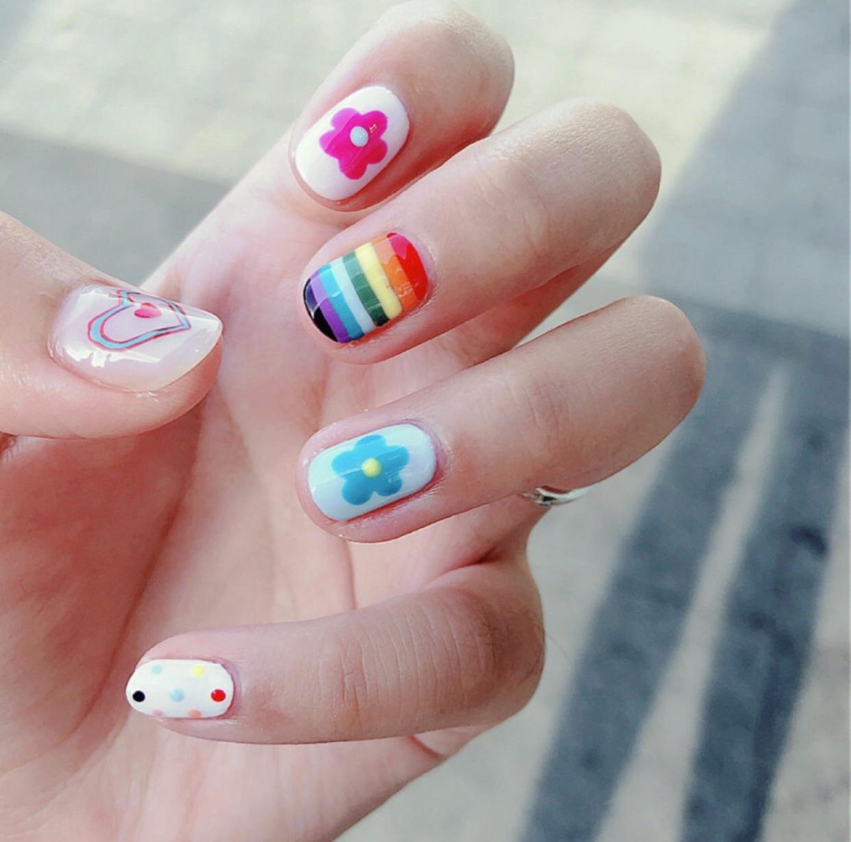而像这样可爱的彩绘美甲,有着满满的减龄效果,一看就是小可爱才有的指尖啦~活泼的色彩加上可爱的造型,看了会让人心情莫名的好起来。