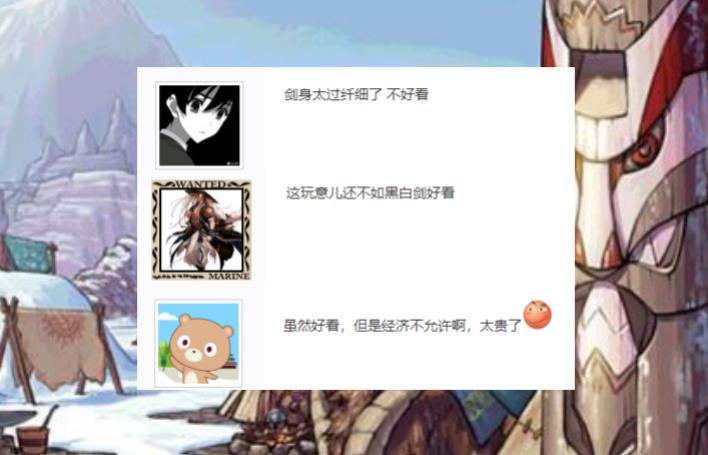 对此,不少玩家也是进行了评价,有玩家认为造型太过纤细了,还不如黑白剑好看,有些玩家则认为好看是好看,但是经济并不允许,太贵了。总而言之,由于每位玩家的审美不同,因此对外形的评价也是褒贬不一,觉得好看的会觉得这造型也太拉风了,觉得不好看的会觉得造型太丑了。那么问题来了,这至尊武器装扮需要多少钱呢?