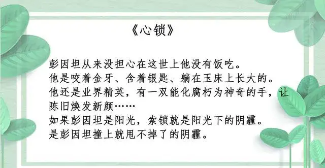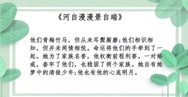 书评:婚后文题材。景自端和佟铁河的婚姻有点一言难尽,两人虽有婚姻之名,却无婚姻之实。婚后,只在婆婆来的时候两人偶尔装装样子,其他时候都是分开住。而且佟铁河也不常回家,除非他喝醉的时候,会来找她的麻烦,好像她过得不舒服,他就安心了。