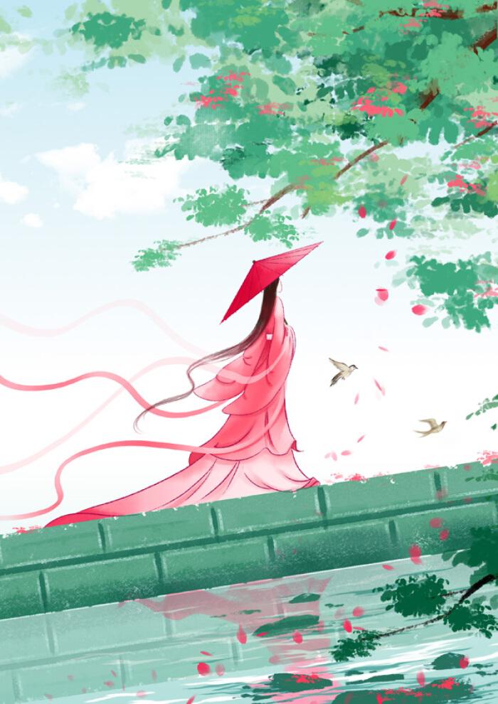 春天那杨柳依依的小小院落里,孤独的女子正在想着远方的他。