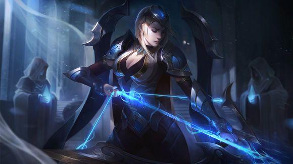 延续了冠军系列的蓝金色调,回城动画是凭空出现的王座和从天而降的箭雨。这皮肤自测试服登场,就受到国内外玩家好评。