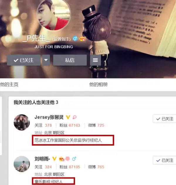 该博主和范冰冰工作室公关总监张馨灵互动较多,是行业内的人,范冰冰很多最新的消息都是他先透露出来,放放风试探粉丝的反应。