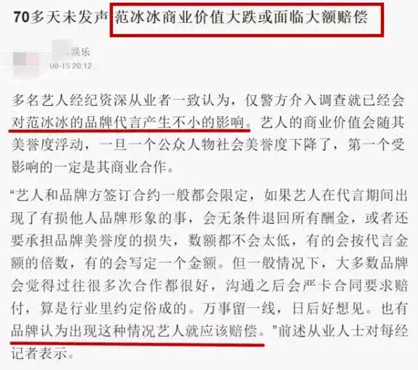 有业内人士分析,范冰冰因负面风波,很多代言产生了影响,或面临大额赔偿。如果真是这样,范冰冰也是祸不单行。