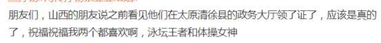 早前有知情人爆料称小两口已经在太原领证结婚。