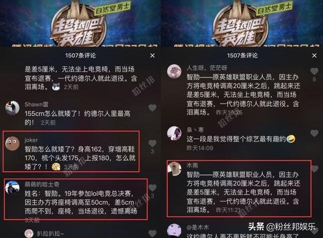 目前在一些短视频平台或者自媒体文章中,许多关于主播智勋身高的“梗”。比如"身高150"、"站在椅子上直播"、"爬不上电竞椅而退役"、“主办方调高座椅50厘米”等。