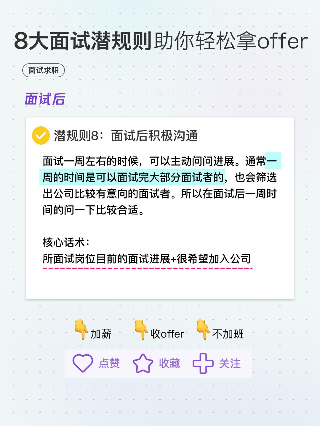 核心话术:所面试岗位目前的面试进展+很希望加入公司